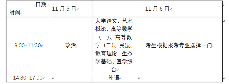 2.专科起点升本科考试时间表