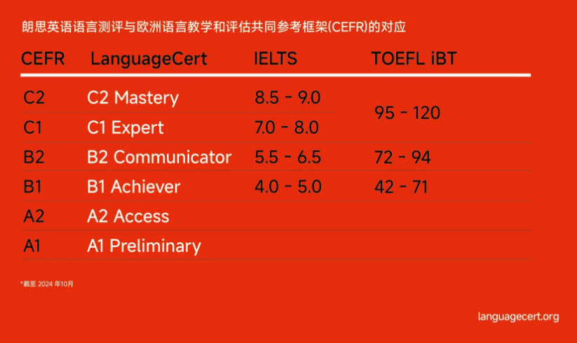 LanguageCert English Assessment,中文名为朗思英语测评,是由英国资格认证和考试管理办公室Ofqual(The Office of Qualifications and Examination Regulation)认可并监管的认证测评机构。朗思英语测评为母语为非英语的学习者在全球学习、工作或旅行的人士提供全新一代英语语言资格证书考试,测试结果与欧洲语言教学与评估共同参考框架(CEFR)完全对应,能够真实反映学习者语言运用的能力。